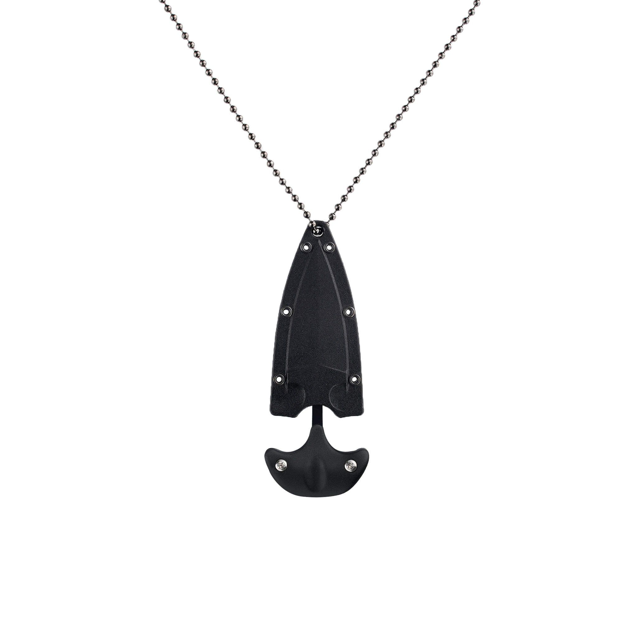 Arow is intentionally crafted for neckwear, boasting a double-edged dagger blade and a protective plastic sheath. Despite its diminutive size, the Arow is both easily accessible and exceptionally potent.