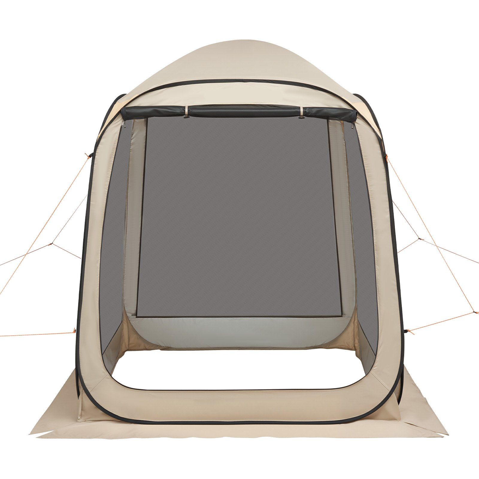 2.Stable & Windproof Structure: Reinforced fiberglass and steel poles keep the pop up screen tent upright even in windy conditions. The curved top design avoids water pooling and sagging